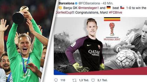 Eigentlich wollte der FC Barcelona lediglich seinem Keeper Marc-Andre ter Stegen zum Confed-Cup-Sieg gratuliereren. Doch der Glückwunsch-Tweet endet peinlich.