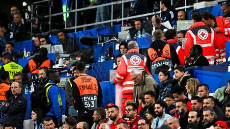 Während auf dem Rasen in der Verlängerung um den Nations-League-Titel gespielt wurde, hatten zahlreiche Ordner zuvor die Unfallstelle abgesichert und versucht, den Verunglückten und die Rettungskräfte vor Blicken zu schützen. Auch ein größeres Polizeiaufgebot half mit, den Bereich abzusperren. Schwarze Decken, Planen und Rettungsdecken wurden als Sichtschutz verwendet.