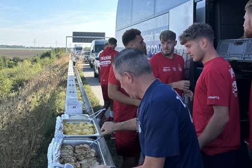 Stau! Regionalliga-Spieler bekommen Essen auf Leitplanke